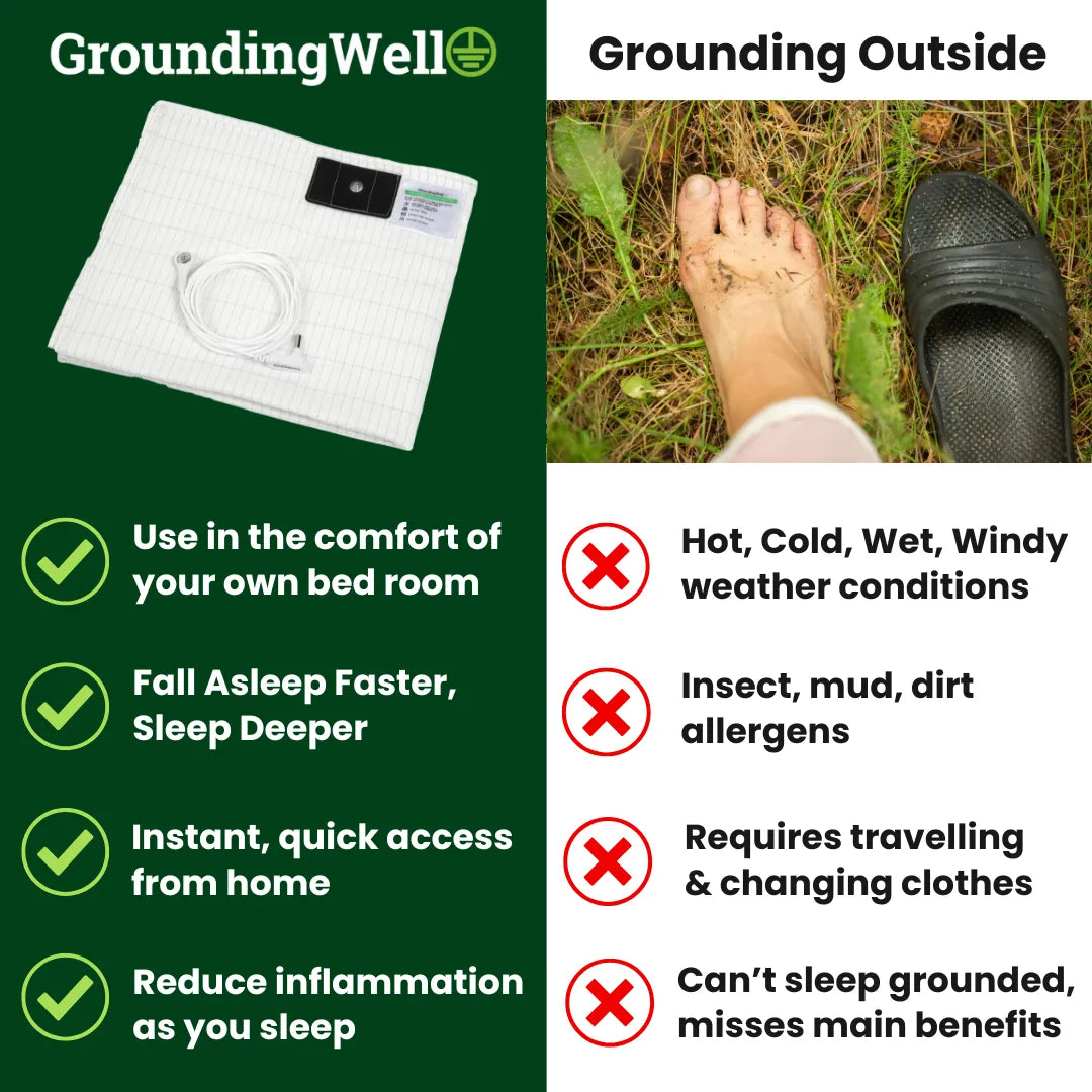 The GroundingWell Bedsheet transfers the Earth's electrons into your bed through the grounding cable in your wall. This allows you to receive the nurturing benefits of grounding during the comfort of your night's sleep.