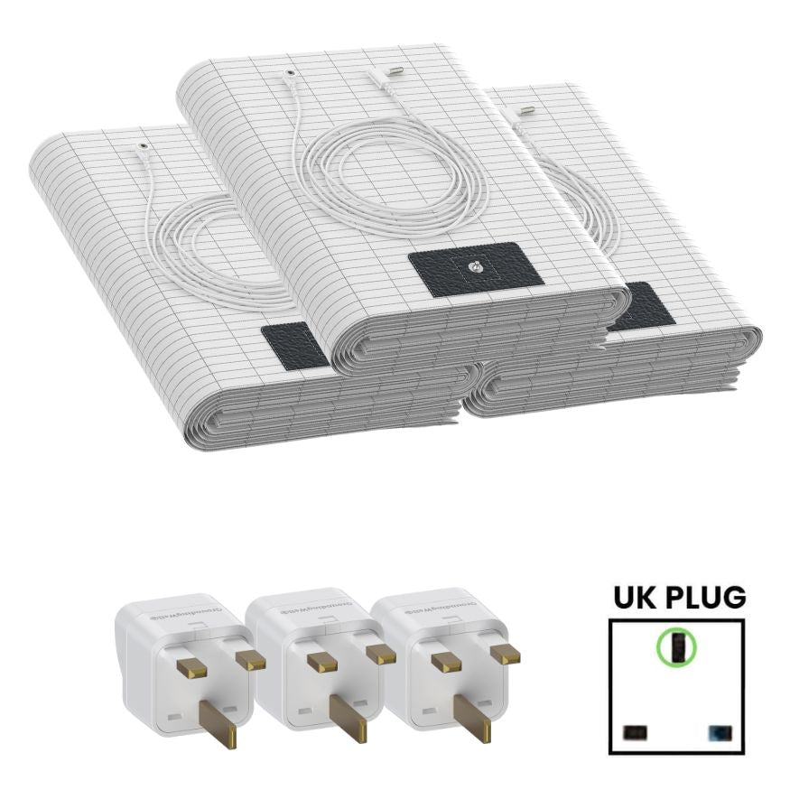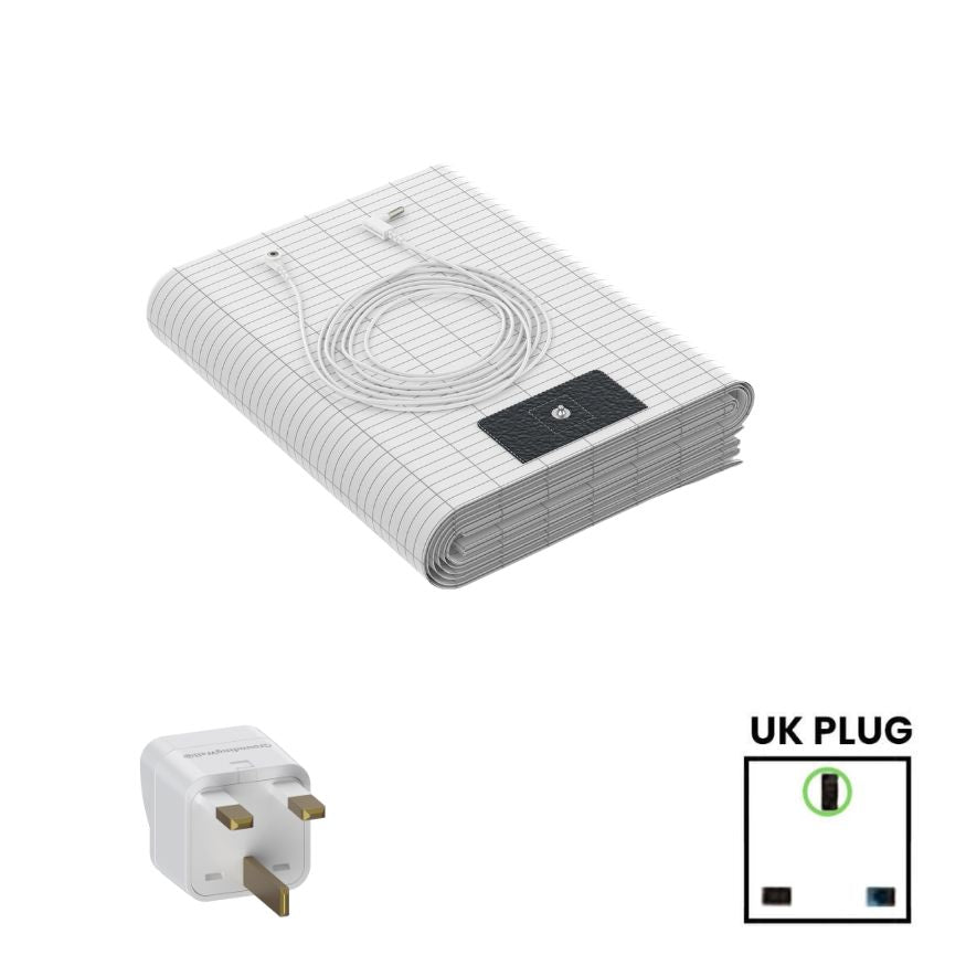 The GroundingWell Bedsheet transfers the Earth's electrons into your bed through the grounding cable in your wall. This allows you to receive the nurturing benefits of grounding during the comfort of your night's sleep.